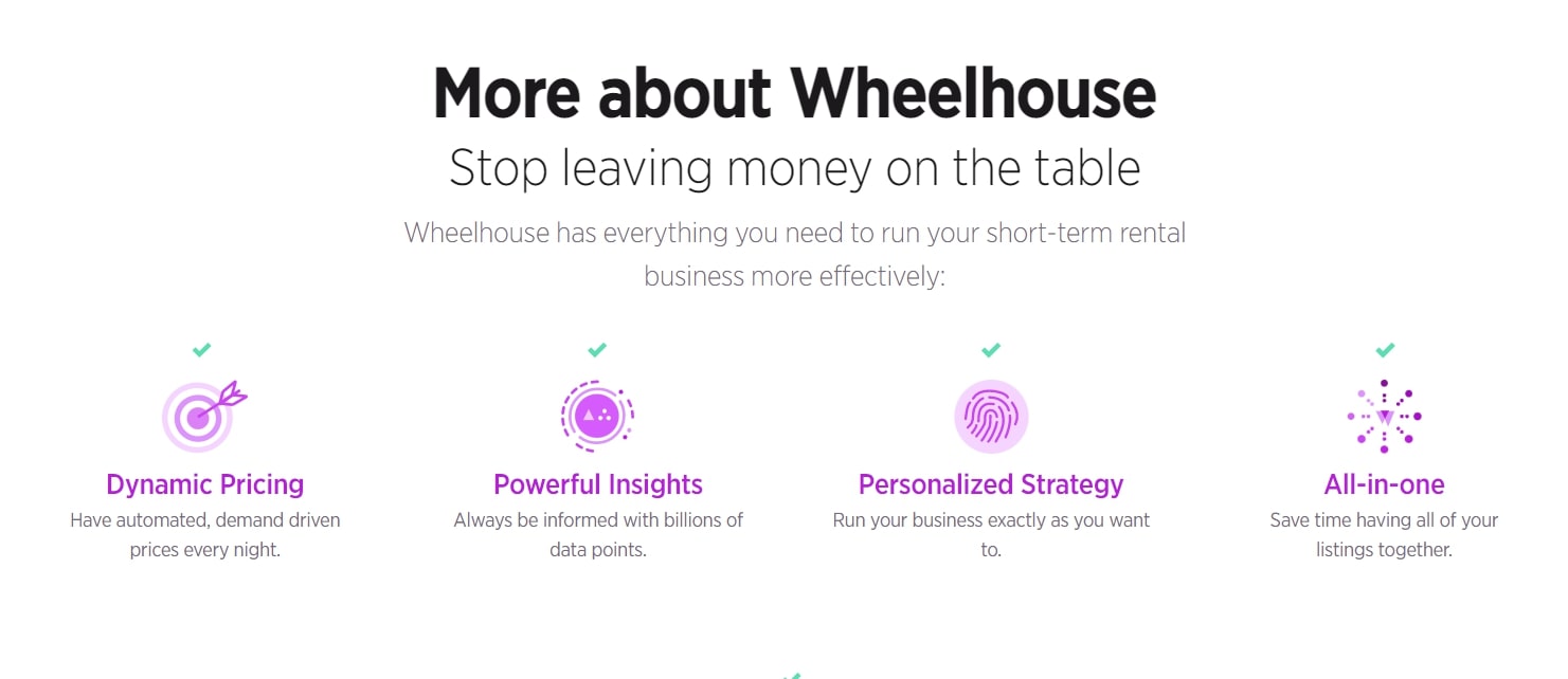 - Dynamic pricing. Use a dynamic pricing tool like Wheelhouse to get your property’s most accurate nightly price in real-time. Wheelhouse uses over 10 billion data points to analyze the demand and predict prices.